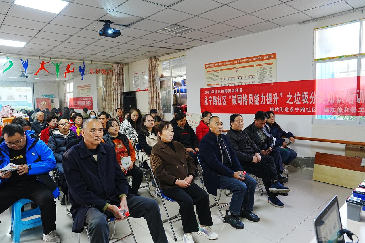 为提升社区微网格员参与治理的能力,助推社区和小区垃圾分类工作顺利开展,2023年11月29日,柳城街道永宁路社区携手温江佳和社会工作服务中心开展微网格员能力提升之垃圾分类知识培训,共30余名微网格员参加培训。 培训开始前,老师用投影仪为大家播放垃圾分类宣传视频,通过视频引发共鸣,并通过微信小程......