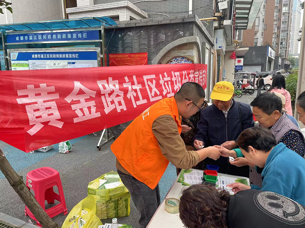 温江区柳城街道黄金路社区开展垃圾分类宣传互动活动