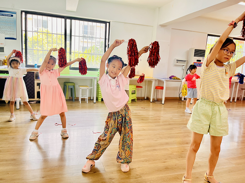 会龙社区开展“无惧热浪 嗨翻大运”儿童啦啦操学习活动