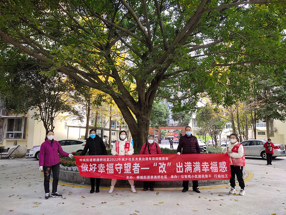 为了推进德通桥社区辖区老旧院落治理,提升社区自组织、院落居民骨干的自治能力,改善老旧小区居住环境。2022年12月14日由德通桥社区主办、公安苑小区志愿者队承办、行益社工协办的做好幸福守望者--“改”出满满幸福感活动在公安苑小区正式拉开帷幕。 活动开始,公安苑的志愿者们手持工具干劲十足,抡锹松......