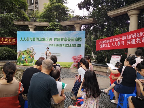 为提高辖区居民群众的健康意识和卫生意识,7月24日,成都高新区桂溪街道交子公园社区在礼顿山一号小区院落开展了以人人参与爱国卫生运动,共建共享美丽家园为主题的爱国卫生运...