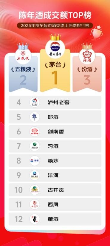 2025京东超市酒类线上消费排行榜揭晓 茅台领衔陈年酒成交额