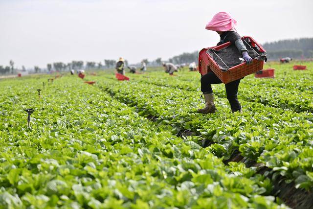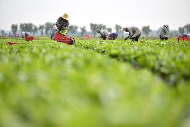 7月1日,工人在位于青铜峡市邵岗镇的益丰农业供港蔬菜基地采摘蔬菜。新华社记者 王鹏 摄