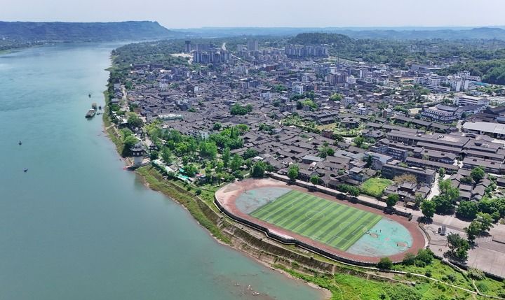 傍晚,我来到四川省宜宾市李庄古镇的月亮田。夜色中,长江逐渐变成一条墨色绸带,岸边灯火星星点点,江风拂面。今年正值中国人民抗日战争暨世界反法西斯战争胜利80周年,这座以文化抗战闻名的小镇格外热闹,从清晨到夜晚,游人络绎不绝。图为李庄古镇(4月30日摄)。新华社记者 刘坤 摄与老照片中的景象相比,眼前的月亮田早已焕然一新:......