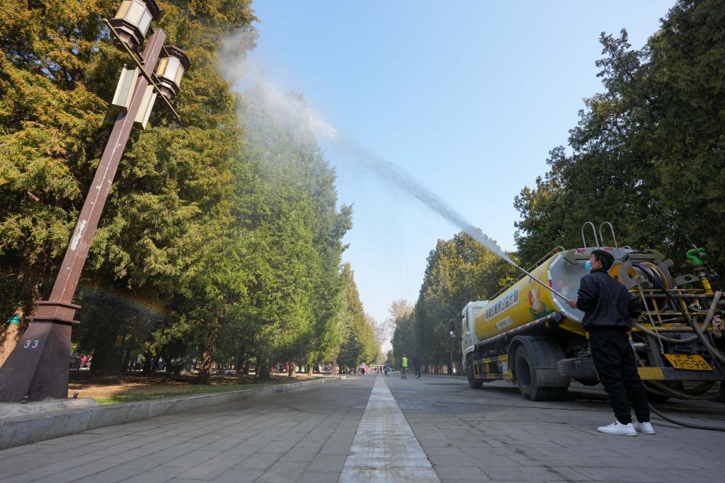 新华社北京3月15日电(记者赵旭、余佩璇、鲍赫)气温渐升,柏树的花粉随之活跃。对过敏人群而言,这意味着春天的“喷嚏季”又来了。 15日上午,记者走进地坛公园。喷灌车隆隆作响,园林工人手持水枪,正对着一排排圆柏喷淋。与往年不同,这次水里添了“新料”。 3月15日,在北京地坛公园,工作人员使用添加了花粉固定剂的水对柏树......
