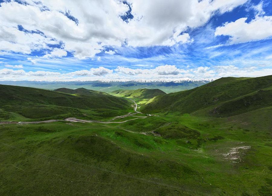 夏日时节,青海省海北藏族自治州祁连县景色壮美。蓝天白云下,祁连山草地延伸向天际,成群的牛羊点缀其中,远处山峰白雪皑皑。祁连山是我国重要的冰川和水源涵养生态功能区,素有“中国湿岛”之称,是连接青藏高原与黄土高原的重要通道,也是守护“中华水塔”、涵养河西走廊的重要生态屏障。