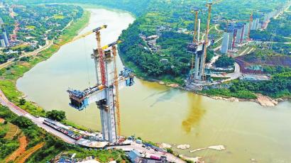 渝昆高铁泸州沱江特大桥主塔封顶现场。 中铁四局供图 7月28日,渝昆高铁川渝段控制性工程——泸州沱江特大桥主塔实现封顶,为该段早日建成通车创造了有利条件。 泸州沱江特大桥全长约2613米,主桥塔高113.2米,为国内首座双柱式V型桥塔、首次采用空间索面斜拉索的高速铁路桥,设计时速350公里,主跨采用124+24......