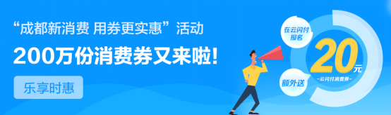 作为成都消费提振系列活动“重头戏” ,"成都新消费 用券更实惠"活动—宜业成都安居消费季,将于2020 年7月13日启动报名,用户可通过云闪付APP报名登记领取消费券。