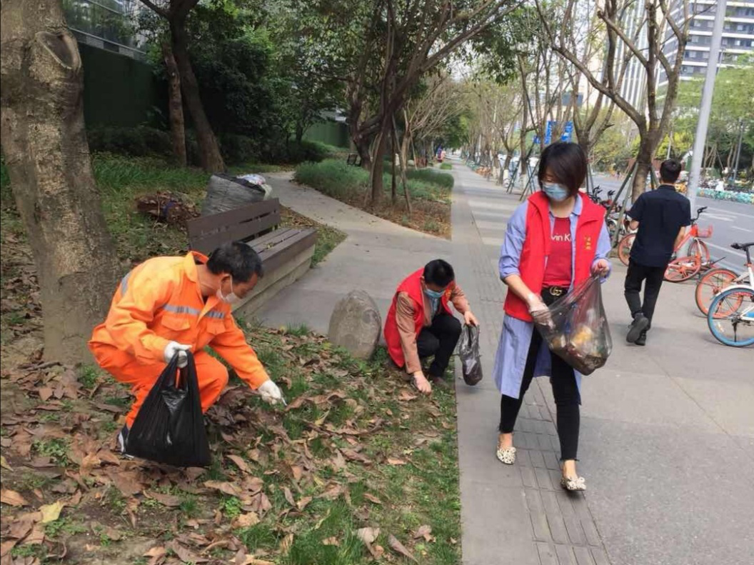4月30日上午,党员志愿者们分成5组,同环卫工人一起到责任区域开展捡拾垃圾公益活动,体验环卫工人日常工作的辛苦。活动期间,党员志愿者们还主动将路边乱停放的共享单车整齐归位,还行人一个安全的通行环境。