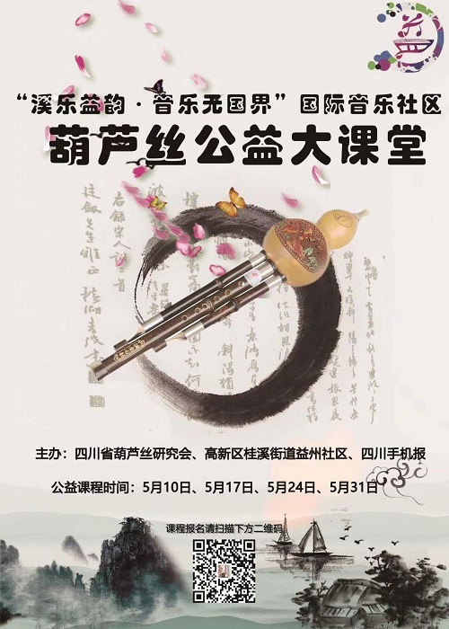 5月10日晚,由四川手机报、成都高新区桂溪街道益州社区和四川省葫芦丝研究会联合推出的葫芦丝公益大课堂在线开课啦,此次葫芦丝公益大课堂共4节课,首堂课程后,后续课程时间分别是5月17日、5月24日和5月31日19:30,仍为网上直播授课,大家只需网络报名,届时手机登录即可上课。