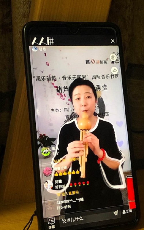 此次公益课邀请了四川省葫芦丝研究会会长冯玉全程担任授课老师。冯老师从葫芦丝渊源开始,介绍不同葫芦丝的构造和特点,不时即兴演奏展示各种葫芦丝。随着悠扬婉转的乐曲声和讲解,直播间里,参与人数不断攀升,“葫芦丝太好听了,好想学习。”“美了,美了,来约起学习。”“公益课后有没有线下课程呀?”……开播1小时,近千名葫芦丝爱好者参与课程,并和老师不断互动。