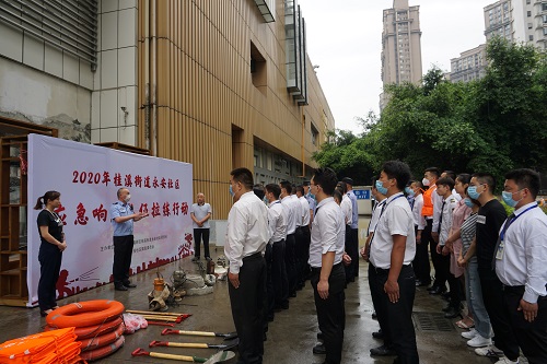 永安社区党委书记高琴英在应急响应群内发布“险情”:由于降雨量大,辖区部分院落、低洼地带出现大量积水,要求各物业单位应急响应队员立即携带相关装备集合。19个应急响应队伍成员单位代表收到通知后,迅速携带相应的应急装备在指定地点迅速集合,与第一次应急拉练相比,此次队员全部集结完毕比第一次拉练时间提前了10分钟。