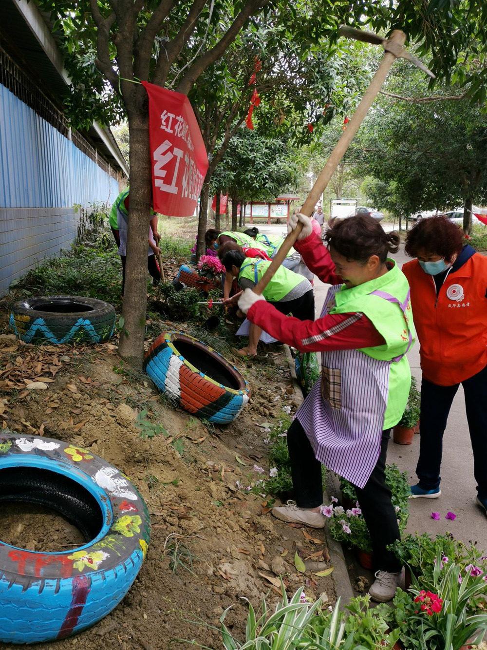 随后,居民在社工和志愿者的带领下将绘画好的轮胎放置在院落的绿化中,将活动中所需的花卉与土壤搬到轮胎处,并在轮胎中种植花卉。轮胎在种植花卉完成后显得格外美丽。最后,居民陪同志愿者一起将轮胎中的花卉浇上水。新绿苑小区物业和沙河路苑小区的也分配了队员给花卉们浇水,确保花卉的成活率。