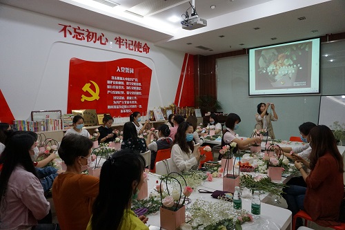 为感恩成都高新区桂溪街道永安社区辖区各企业党组织在疫情防控期间的默默付出,促进企业之间的联系,加速推动“三联三评”工作,丰富企业职工的精神文化生活,提高员工的艺术修养, 5月27日下午,成都高新区桂溪街道永安社区党委联合特拉克斯楼宇综合党委在社区会议室开展“与你相约花young年华 感恩有你浪漫来袭”花艺讲座活动。