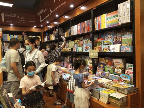 在党建指导员的带领下,现场儿童在家长的陪同下共同到达辖区西西弗书店,挑选喜欢的书籍。儿童到达书店后就像脱缰的小马一样,都跑到了儿童书区,有些在这里找找、那里看看,挑选自己喜欢的书籍;还有一些似乎是早有中意的书本,一下子就冲到了喜欢的区域,爱不释手地把书拿在手里看了起来。经过半个小时的挑选,小朋友都选中了自己喜欢的儿童读物。新南商圈综合党委为每个到场的儿童准备了一份唐诗经典读本。