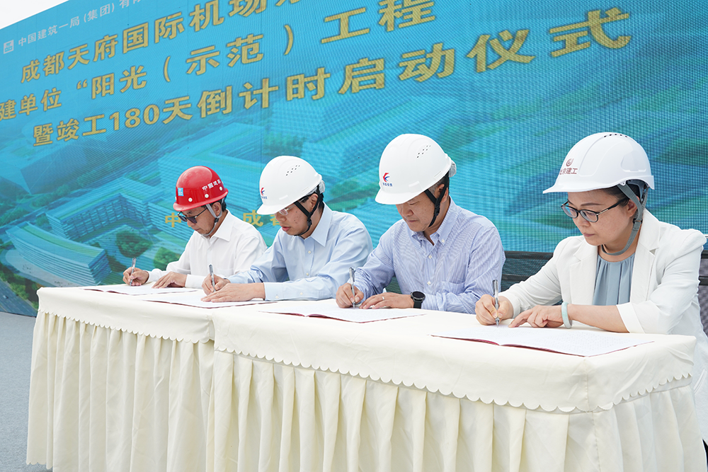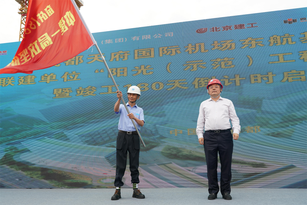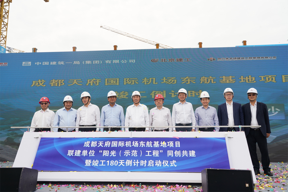 6月3日,成都天府国际机场东航基地项目联建单位“阳光(示范)工程”同创共建暨竣工180天倒计时启动仪式在中建一局承建的成都天府国际机场东航生产辅助区项目(一期)施工现场举行。中国东方航空集团有限公司总经理、党组副书记李养民;中国建筑一局(集团)有限公司党委书记、董事长罗世威,监事会主席、党委常委、纪委书记王希强,华东区域总经理金德运,西南公司董事长史建良,党委副书记、纪委书记、工会主席刘斐;北京建工集团有限责任公司总经理郭明星等领导及代表出席本次活动。