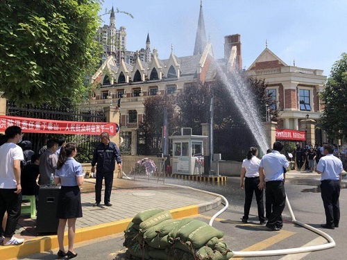活动当天,各防汛代表队齐聚在衡信英伦物业管理有限公司B区机动车车道进出口,首先开展的是防汛技能竞赛,包括20米搬运沙袋砌防洪墙和20米担架救援受伤人员,现场角逐激烈。下午三点,防汛演练活动开始,这次演练的背景是因强降雨,水势猛涨淹没中德英伦联邦104车场出入口。在接到通知后,总指挥接到报告后决定启动防洪应急预案
