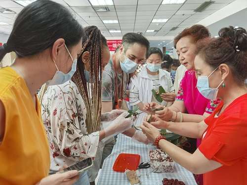 6月24日下午,成都高新区桂溪街道益州社区联合成都知食社区营造促进中心在社区会议室开展了“国际成都 共建共享”国际志愿服务人才培训项目之共享端午好时光活动。辖区居民、企业职工及外籍友人参与其中,大家从了解端午节文化到实际动手包粽子,共同体验这传承千年的厨作过程。