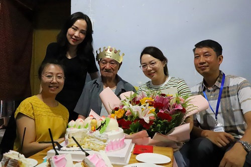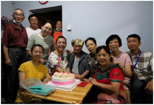 慰问人员为老人送上了精心准备的生日蛋糕、鲜花和慰问金,向老人表示最诚挚的祝福和真挚的敬意,一起为老人唱起了《生日快乐歌》并合影留念,现场氛围温馨欢乐。慰问人员陪老人聊天,了解老人的身体状况和生活状况,并叮嘱家属一定要好好照顾老人身体,如有任何生活上的需要和困难一定要及时告知社区。老人及家属对社区的关心和帮助表示衷心感谢。