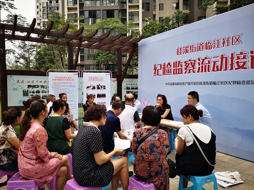 为全面贯彻落实打造开放式纪委监委的部署安排,积极推动解决群众关心的热点难点问题, 7月10日上午,成都高新区桂溪街道临江社区在临江苑东区廉政长廊组织开展纪检监察流动接访暨“廉洁同心”坝坝会,成都高新区纪工委包片驻点临江社区干部潘青龙,临江社区党委副书记、居委会主任王斌及临江社区两委委员参加。