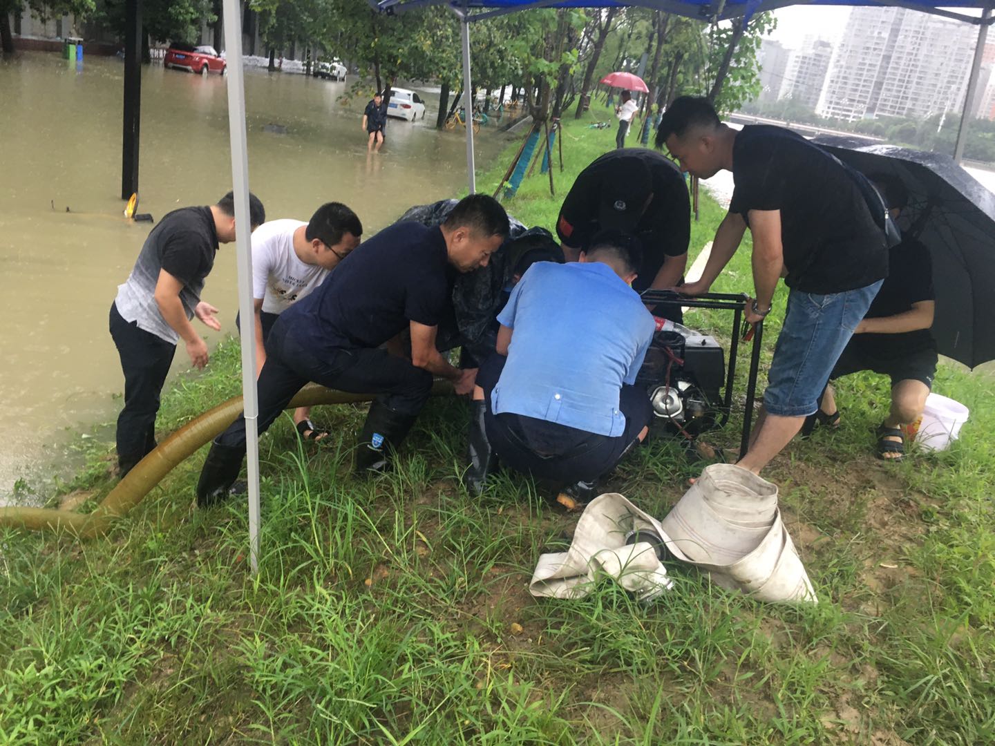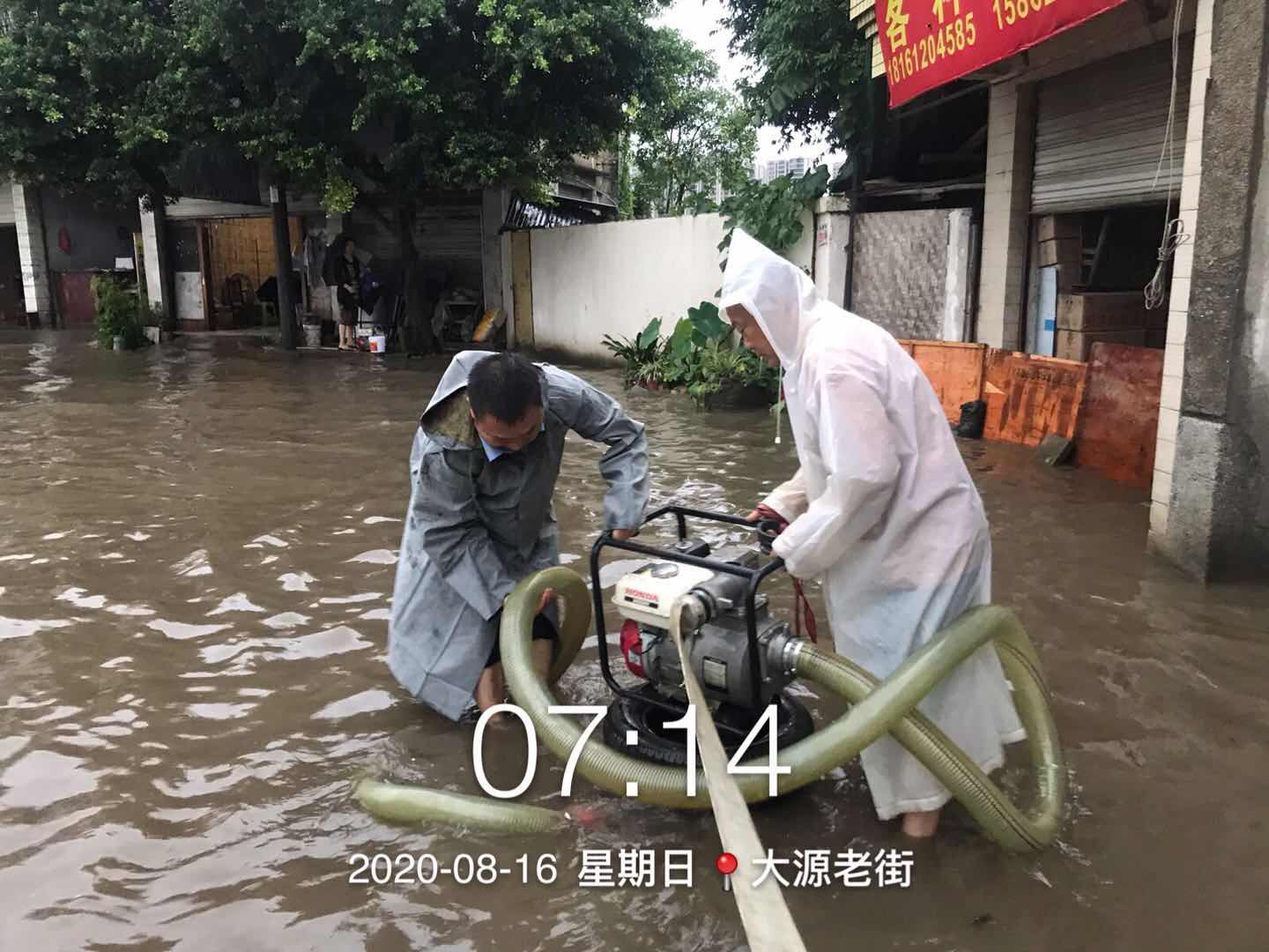 8月16日早上,桂溪街道综治城管民兵巡逻大队针对大源老街积水路面进行排涝,帮助美年广场群众对河边路道上停放的私家车进行移除,加强对锦江河道沿线水位的巡查,随时关注超水位越堤现象;加强基地安全巡查,杜绝基地安全事故发生。