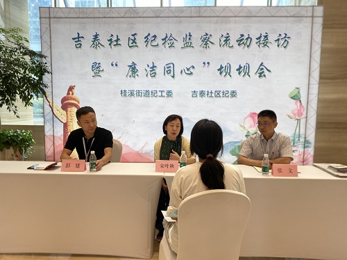 为更加深入地问需于民、问廉于民,2020年8月20日,成都高新区桂溪街道吉泰社区在OCG写字楼一楼大厅人流集中处,开展纪检监察流动接访暨“廉洁同心”坝坝会活动,深入楼宇“零距离”听取企业员工、居民群众关心关注的问题及意见建议。高新区巡察办巡察专员宋叶秋现场对流动接访工作进行指导,桂溪街道吉泰社区党委书记彭建,社区党委副书记、纪委书记张文及企业员工共50余人参加。