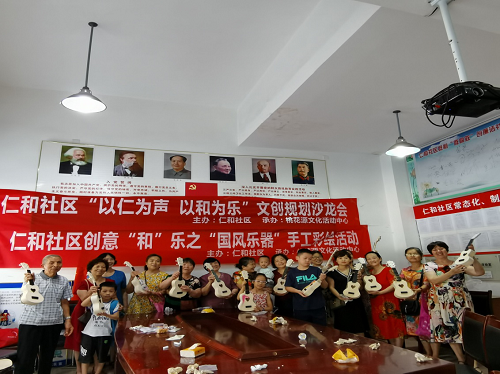 为动员社区党员、热心居民共同参与,分享文创社区营造的案例,探讨社区仁声和乐品牌营造的实施内容及方向,并对项目提供下一步的建议与看法,推动仁声和乐项目的开展,提升社区居民对文创社区营造的理解与掌握,共建共享文创生活社区。并组织社区亲子家庭手工diy木制乐器,让亲子家庭在为乐器穿“新衣”的同时,对乐器文化、“仁和”内涵及“仁声和乐”社区营造有更加直接而深入的体验,激发居民群众展现音乐与艺术能力。仁和社区于2020年8月25日上午9:30开展了 “以仁为声 以和为乐”文创规划沙龙会暨创意“和”乐之“国风乐器”手工彩绘活动.。
