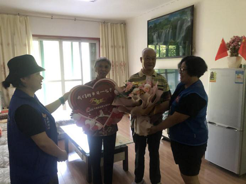 半世纪牵手,五十年同心,再美妙的誓言也比不上“执子之手、与子偕老”,再浪漫的事也不过于“与你一起慢慢变老”。为了纪念社区金婚老人们同甘共苦走过的五十余年,为老人们留下一个浪漫、难忘的岁月痕迹,2020年8月25日七夕节当日,姐儿堰社区志愿者们上门为辖区10对50年婚龄老人送上祝福并为他们拍照留下幸福的瞬间。