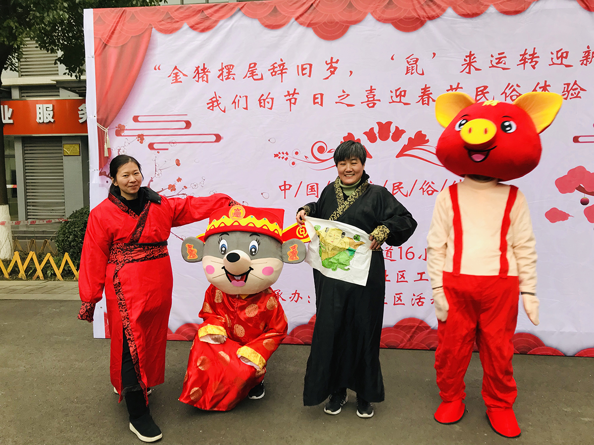 为传承和发扬中国传统文化,体验和感受中国传统文化的魅力,同时丰富居民的业余生活,1月12日,由成都市西园街道16小时党委、2号苑社区工作站主办,2号苑社区活动中心承办的“金猪摆尾辞旧岁,‘鼠’来运转迎新年”我们的节日之喜迎春节民俗体验活动在2号苑社区顺利开展。170余名居民参与本次活动。