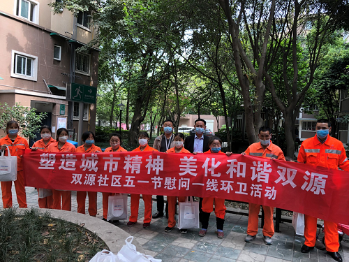 五一劳动节来临之际,为表达对一线环卫工人和一线志愿者的关心和关爱,4月27日上午,成都高新区桂溪街道双源社区开展了“塑造城市精神、美化和谐双源”“绵薄之力汇成磅礴伟力”慰问活动。
