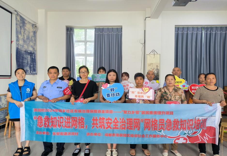 7月19日上午,由东安街道洪河村主办、成都市龙泉驿区睦邻社会工作服务中心承办的“急救知识进网格,共筑安全治理网”网格员急救知识培训在洪河村党群服务中心成功举行。培训现场,专业老师通过理论讲解与实操演示相结合的方式,深入浅出地讲解了心肺复苏术(CPR)、气道异物梗阻急救法(海姆立克急救法)以及常见创伤处理的基本原则和技巧......