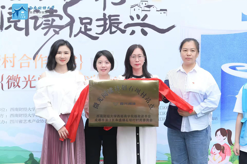 4月20日,“书香润乡村 阅读促振兴”校村合作共建“微光阅读”计划公益活动在成都市温江区和盛镇石坝村正式启动。西南财经大学西部商学院副院长汪阳,四川省艺术产业协会会长银莲,和盛镇党委委员、人大主席石定强,和盛镇便民服务中心主任周勇智等领导嘉宾出席启动仪式。活动现场,相关领导和嘉宾共同为首个微光阅读站温江石坝村站点揭牌,......