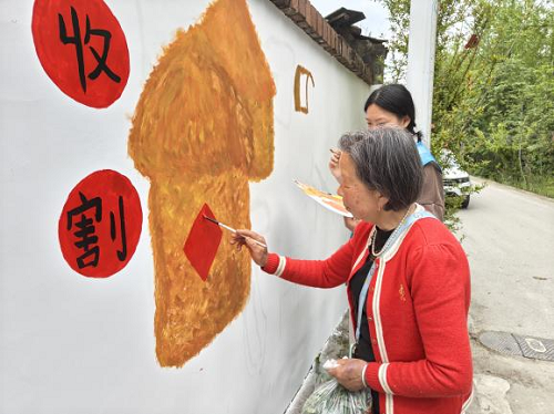 红专村“院落微更新”墙面绘画 为社区增添乡土情怀文化风景线