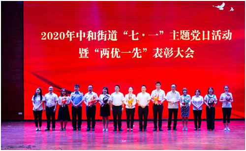 7月1日下午,中和街道在新文体中心开展2020年“七·一”主题党日活动暨“两优一先”表彰大会。会议由街道党工委副书记、办事处主任刘虹主持,党工委班子成员,调研员,社区、机关及“两新”党员代表共计150余人参会。