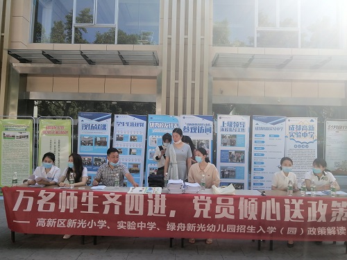 为方便群众及时、准确、全面了解高新区招生入学政策,5月17日,成都高新区肖家河街道新光社区联合辖区绿舟新光幼儿园、新光小学、高新实验中学(新北校区)在社区大厅外开展万...
