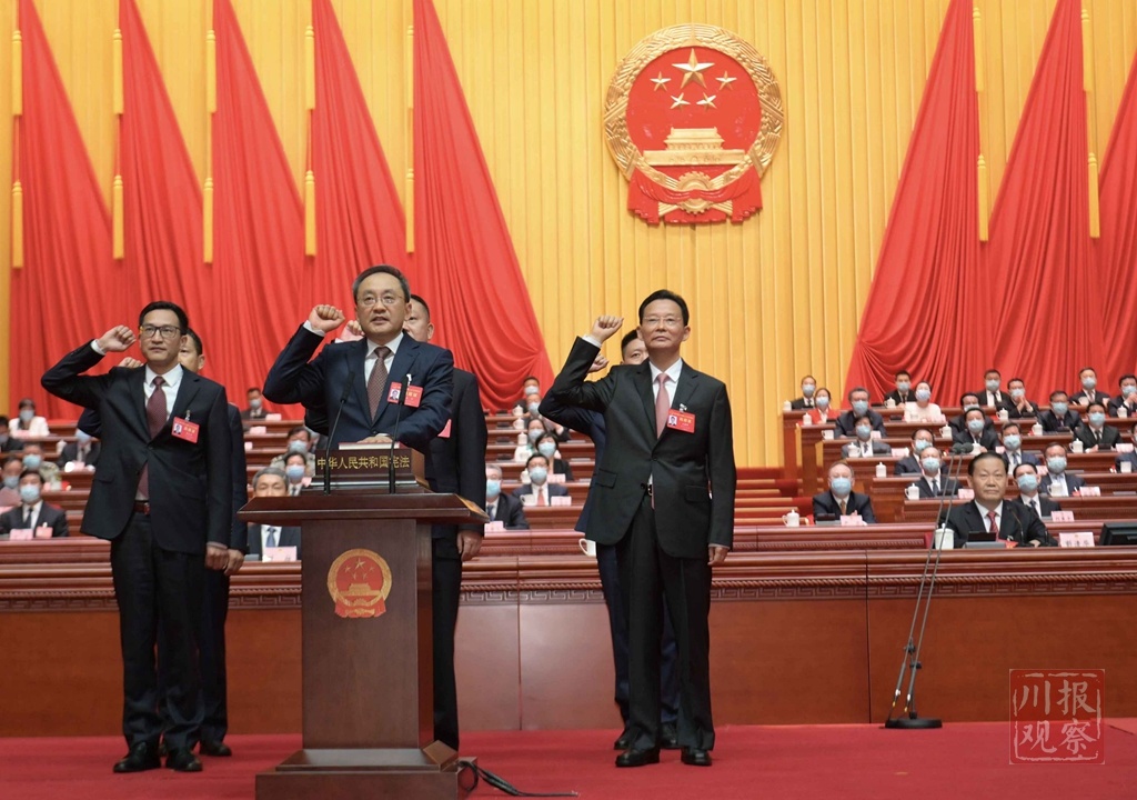 会议举行了宪法宣誓仪式。新当选的四川省第十三届人民代表大会常务委员会副主任、委员,在与会代表的共同见证下,依法进行了宪法宣誓。