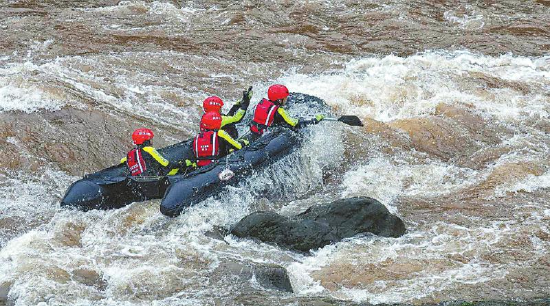 7月16日,雅安市消防救援支队和平路特勤站救援队员在周公河训练激流横渡。