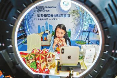 在消费扶贫云展销直播间里,带货主播正在试吃一款风味辣子鸡。记者向宇摄