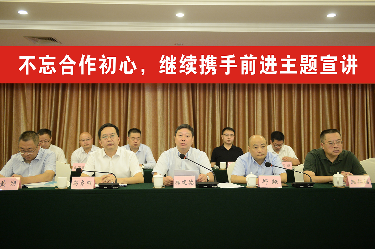 9月6日,民进四川省委副主委、民进成都市委主委、成都市政协副主席杨建德,到民进金堂总支开展”不忘合作初心,继续携手前进”主题宣讲活动。民进成都市委副主委兼秘书长邱耘,中共金堂县委常委、宣传部部长高齐强,金堂县副县长黄朔出席会议。