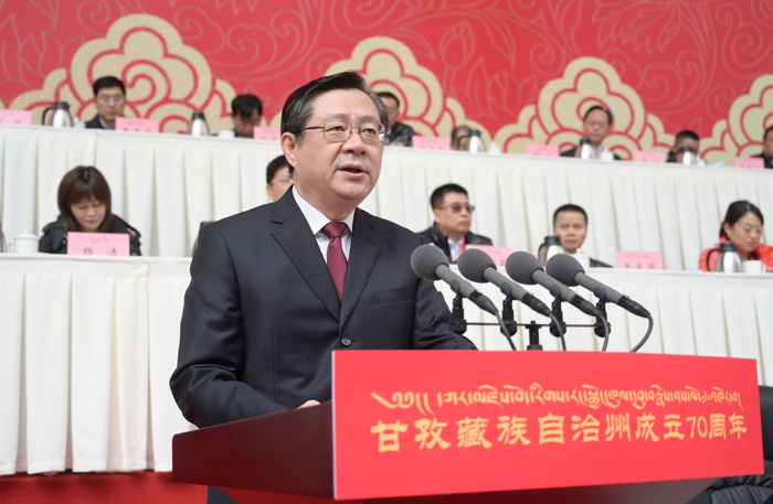 郭卫平代表中央有关部门祝贺团对甘孜州各族人民致以节日的祝贺,高度评价70年来特别是党的十八大以来甘孜州经济社会发展取得的辉煌成就。他指出,70年的生动实践,充分证明了只有在中国共产党领导下,坚持中国特色社会主义道路,全面贯彻党的民族政策,坚持民族区域自治制度,才能不断谱写甘孜州经济社会发展的新篇章。当前,我国正处在全面建成小康社会决胜阶段,即将开启全面建设社会主义现代化国家新征程的历史时刻。要坚定以习近平新时代中国特色社会主义思想为指导,贯彻落实党的民族政策和新时代党的治藏方略,以铸牢中华民族共同体意识为主线,团结一心、开拓进取,大力推动甘孜州经济社会、民族团结进步事业全面发展,为实现“两个一百年”奋斗目标、实现中华民族伟大复兴的中国梦作出新的更大贡献。