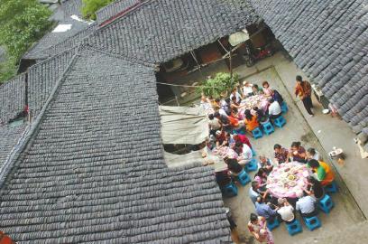 2009 5月30日,成都市黄伞巷的老住户在搬迁前集中吃了个告别饭。