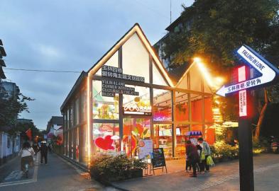 10月12日傍晚,成都市玉林四巷爱转角文创街已经亮灯了,依托对老旧房屋的更新改造,这条小巷变身成了充满成都人文和生活气息的街区范本。