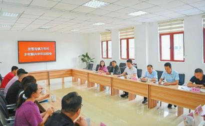 7月19日下午3时,万年村的一间会议室里,与会者围坐一圈,热烈地发言、讨论,这次会议是万年村的半年总结会。四川日报全媒体记者 杨树 摄