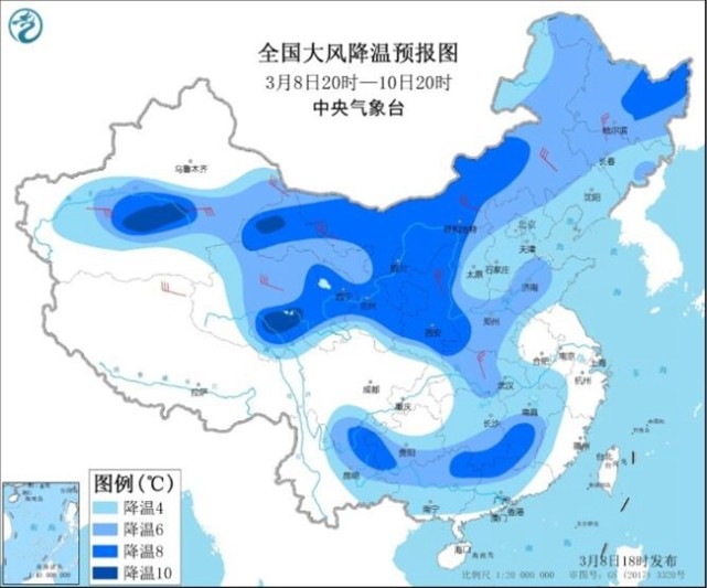 一些地方降温是肯定滴~比如凉山州3月8日发布了强降温蓝色预警信号;