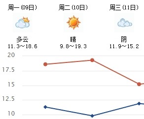四川省气象台预计,3月9日至15日,全省各地多云天气为主,日平均最高气温在16℃~20℃之间摆动,日最低气温则从3月10日的8℃左右慢慢抬升到12℃左右。