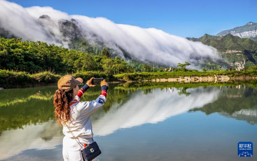 5月13日,重庆市南川区金佛山东麓出现云瀑景观,蒸腾的云雾顺着山势飞流而下,吸引众多游客前来观瀑打卡。 新华社发(瞿明斌 摄) 5月13日,重庆市南川区金佛山东麓出现云瀑景观,蒸腾的云雾顺着山势飞流而下,吸引众多游客前来观瀑打卡。 新华社发(瞿明斌 摄) 5月13日,重庆市南川区金佛山东麓出现云瀑景观,蒸腾......