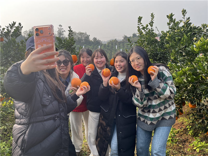 游客在田间拍照留念。主办方供图“今天特意带孩子来体验农事,自己摘的橙子感觉格外甜!”12月18日下午,在四川省邻水县石滓镇双盛脐橙园里,来自重庆市北碚区的游客印文平一边帮孩子摘下枝头金黄的脐橙,一边笑着说。“橙意满满·欢乐体验”脐橙采摘活动在这里欢乐开启。作为2025年“巴蜀风韵·橙意邻水”农商文旅宣传周的重头戏之一,......