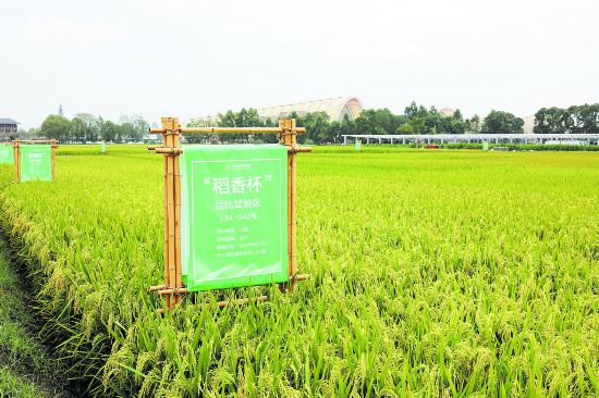在天府农博园里,丰收节将会评选出最终的“稻香杯”优质米品种 在即将到来的2022年中国农民丰收节上,将举行四川省第七届“稻香杯”优质米评选颁奖活动。昨日记者在天府农博园的水稻大田里看到,参加评选的55个水稻品种整齐排列在田间,将会在丰收节上评选出最终的“稻香杯”优质米品种。 作为四川好米的风向标,今年的“稻香杯......