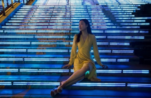 随着灯光的变化,每一道光束组合排列,有时像在燃烧的熊熊烈火,有时像一道彩虹斑斓夺目,呈现出不同的视觉效果。