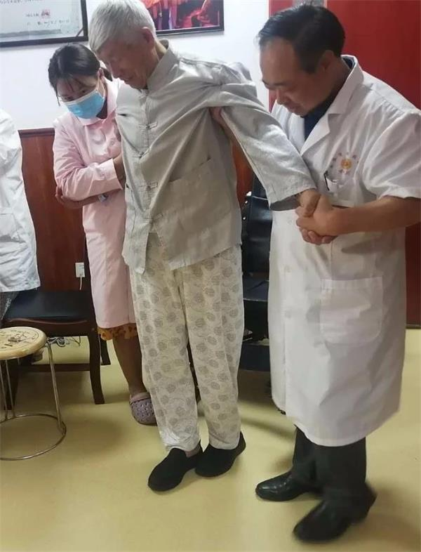 “在入院治疗的第一周,我们黄再军院长鼓励苏爷爷试着站起来,但是苏爷爷就如同蹒跚学步的孩子一般,因害怕摔倒,迟迟不敢丢掉轮椅走路。”见证苏爷爷站起来的护士小姐姐告诉我们。